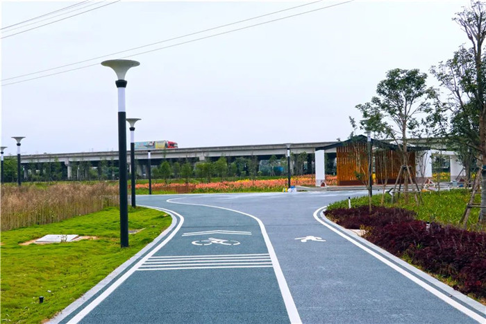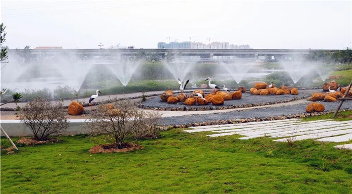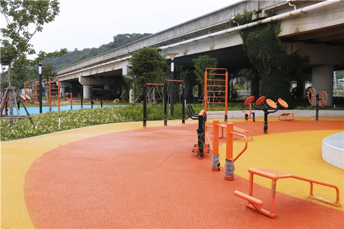走进实地,只见憩息在水边的几只白鹭映入眼帘,耳边响起清脆的鸟鸣声,温柔的微风轻轻拂面,处处皆是生机盎然的美好景色。经过人行栈桥,来到健身广场,各种健身器械有序排列,在这里健身还可以看到不远处被各色美人蕉包围的湿地栈道。