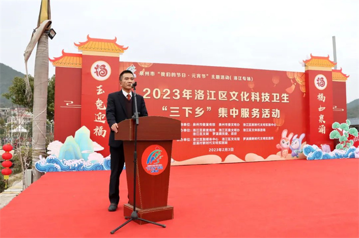 2月3日,“玉兔迎福 福如泉涌”2023年betvictor伟德官网 文化科技卫生“三下乡”集中服务暨泉州市“我们的节日·元宵节”主题活动(洛江专场)在罗溪镇新时代文明实践公园举行。区委常委、宣传部部长张荣伟参加。
