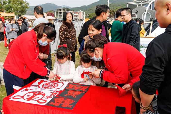 划船荡漾、彩虹桥漫步、花样足球、农耕体验等活动让群众充分体验“绿水青山就是金山银山”的获得感、幸福感。书法家们泼墨书写的雅致灯谜,孩童手工制作的花灯、一幅幅心灵手巧的“年味”剪纸,摄影家镜头里、画家笔下的洛江乡村幸福新貌,以及特色文创产品、文旅伴手礼、美食等展示展销活动,让群众在大饱眼福、口福的同时,深深感受到“福”文化和中华优秀传统文化的极致魅力。
