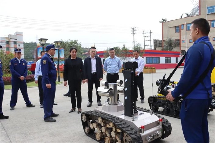 颜丽明一行还前往区消防救援大队,观摩消防灭火侦察机器人等装备器材展示及消防救援器材精准操作展示等,调研消防救援工作及队伍建设情况。颜丽明对区消防救援大队取得的成绩和作出的贡献表示肯定,并指出消防救援队伍是应急救援的一支重要力量,有着光荣优良的历史传统,要紧跟形势任务,锤炼打赢各类救援的攻坚本领,在人民群众最需要的时候挺身而出、迎难而上、冲锋在前,为全区应急救援和社会稳定做出积极贡献。