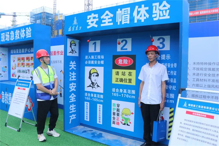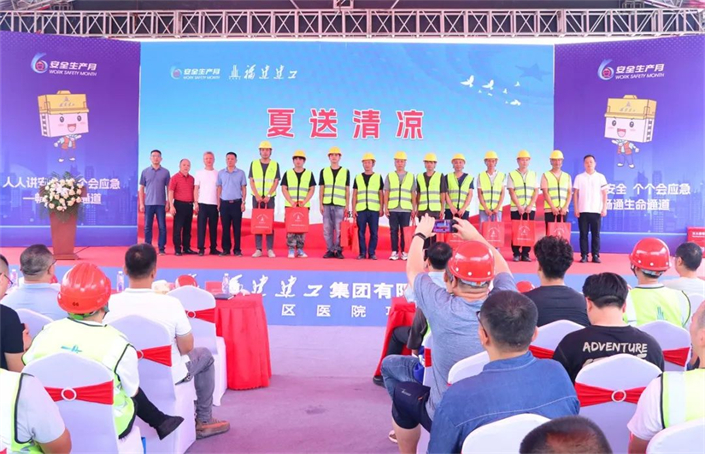 活动还组织前往城建?乐居安达小区建设现场,观摩安全生产标准化建设,参观“龙吸水”大型抽水设备等防汛设施设备,并进行逃生演练及自救互救等应急避险能力知识宣传。此外,活动还组织各参建单位代表进行安全宣誓,开展消防安全知识讲解和演示、“心肺复苏”及“AED”讲解演示及“夏送清凉”慰问仪式。