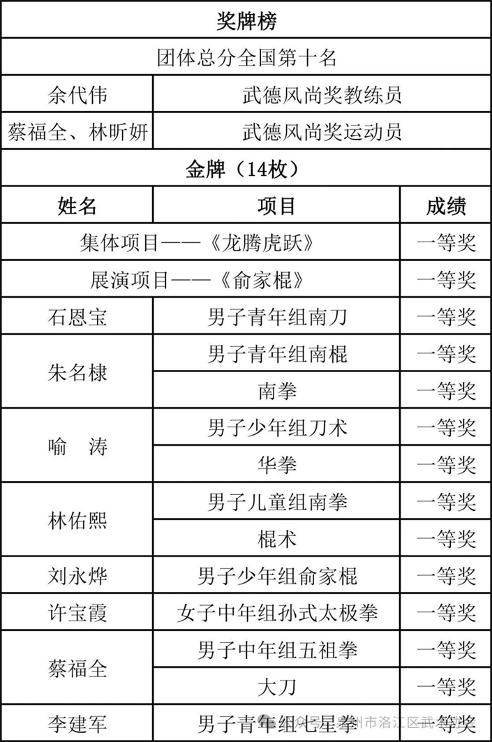在3天的赛程中,betvictor伟德官网 武术之乡代表队顽强拼搏、奋勇争先,拿下男子青年组南刀、男子中年组五祖拳、女子中年组孙氏太极拳等项目一等奖的好成绩,其中不少队员更是以项目第一名的成绩取得一等奖,为betvictor伟德官网 武术之乡代表队跻身团体总分前十名奠定基石。