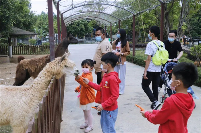 园区内,不少对动物充满好奇的小朋友在父母的陪伴下,与可爱的小动物近距离接触,甚至在家长的鼓励下,大胆地尝试与袋鼠、环尾狐猴等动物进行互动和喂食。