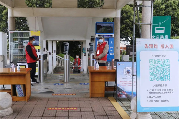 “请您正确佩戴口罩,主动接受体温检测,保持1米以上间距排队,依次扫码预约入园……”在仙公山风景名胜区,工作人员耐心引导游客配合景区防疫工作,出示健康码、通信行程卡、景区预约码和72小时核酸检测阴性证明后,依次有序入园。
