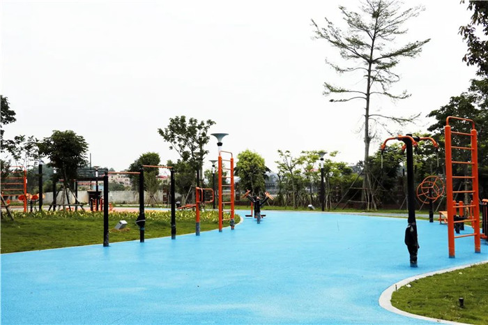 走进实地,只见憩息在水边的几只白鹭映入眼帘,耳边响起清脆的鸟鸣声,温柔的微风轻轻拂面,处处皆是生机盎然的美好景色。经过人行栈桥,来到健身广场,各种健身器械有序排列,在这里健身还可以看到不远处被各色美人蕉包围的湿地栈道。