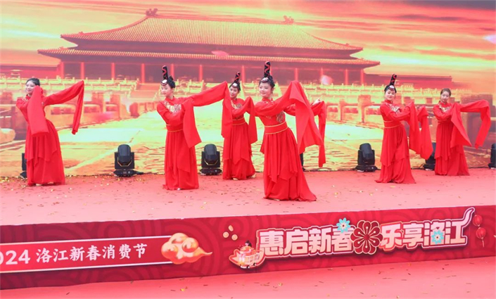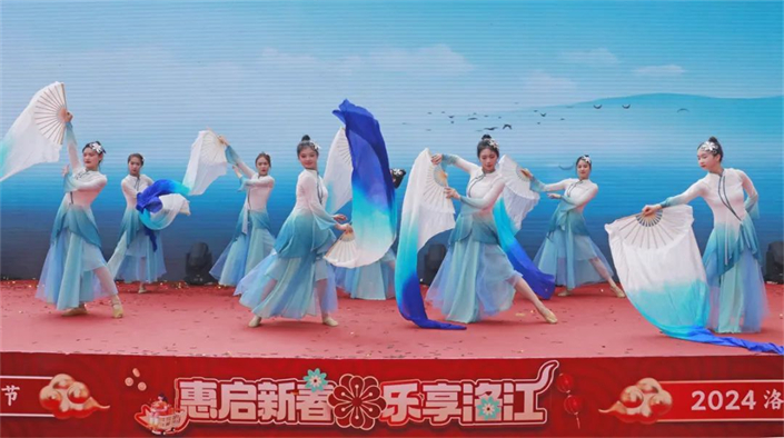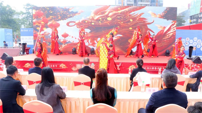 活动在精彩的开场舞表演中拉开序幕。启动仪式上,沈艺程发表致辞;与会领导共同推杆,宣布2024洛江新春消费节活动正式启动。