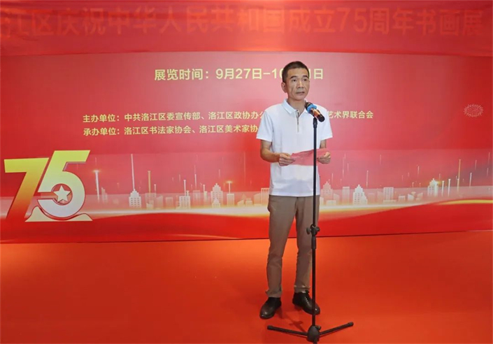 张荣伟在致辞中指出,全区广大文艺工作者要以此次书画展为契机,继续加强文艺精品创作,不断提高艺术创作水平,传承与弘扬中华优秀传统文化,推进文化的创造性转化和创新性发展,始终坚持正确的创作方向,持续以优秀作品描绘党的辉煌成就、歌颂党恩、讴歌时代,生动传递洛江声音,讲述洛江故事。