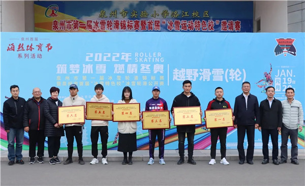 1月20日,2022年“筑梦冰雪 燃情冬奥”泉州市第一届冰雪轮滑锦标赛暨泉州市首届“冰雪特色校”冰雪轮滑公开赛闭幕仪式在市实验小学洛江校区举行。市体育局四级调研员、党组成员张延龄参加。
