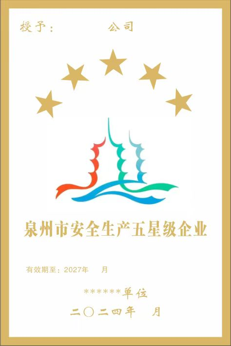 3.泉州市商贸企业安全生产星级牌匾(参考)