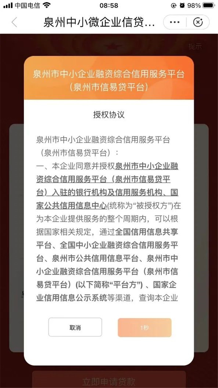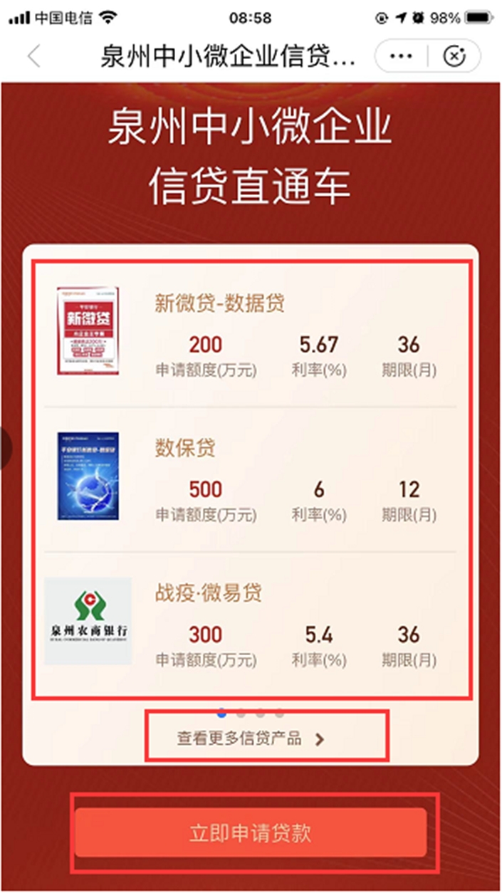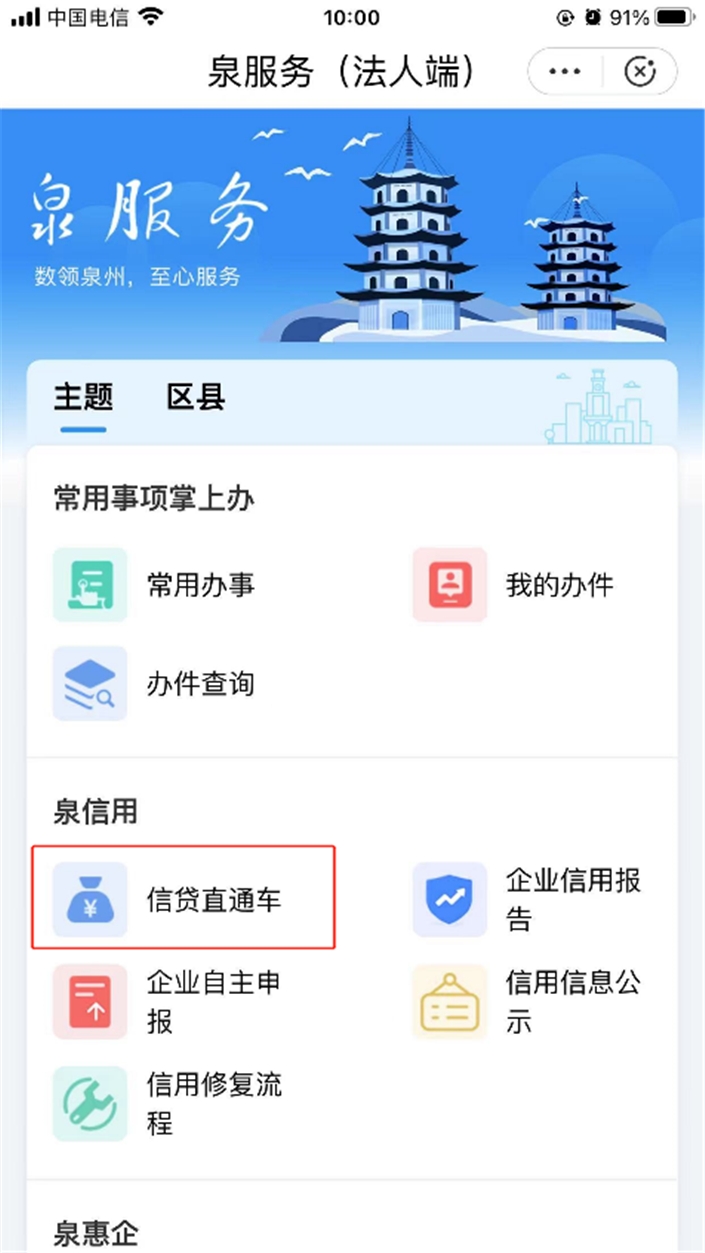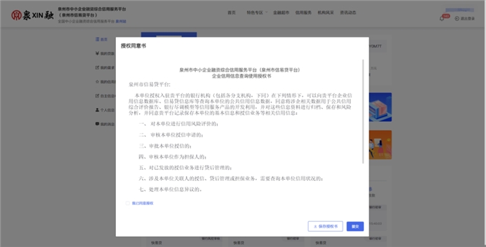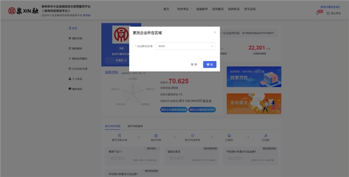 “闽政通-泉服务”泉信用的“信贷直通车”模块
