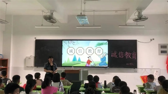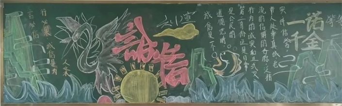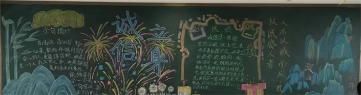 学校注重将诚信教育融于校园文化建设中,积极利用国旗下讲话、校园宣传栏、班级黑板报等宣传诚信思想,引导学生时刻以诚信为标准严格要求自己,将社会主义核心价值观内化于心,外化于行。