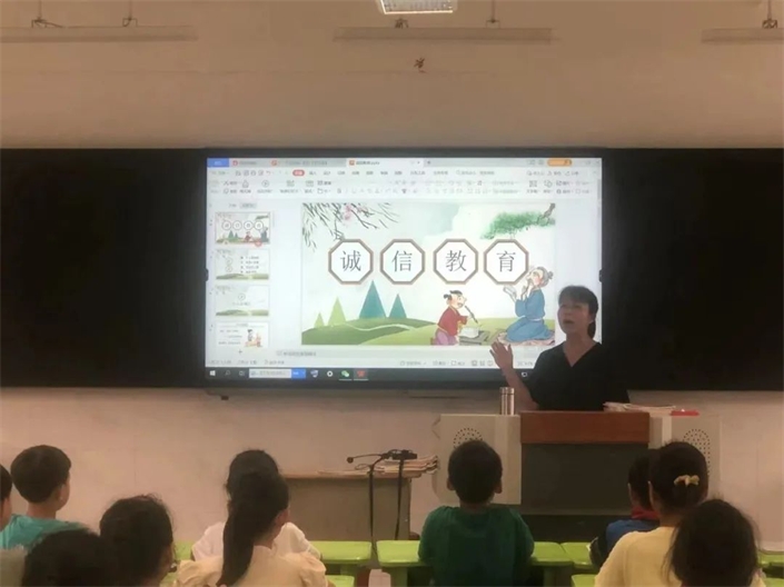 积极组织各班开展“信在校园,‘诚’就未来”主题班会课。班会课上,各班班主任通过播放诚信动画、理解诚信的含义、品读诚信小故事等环节开展活动,引导学生理解诚信、感悟诚信,并组织学生们联系生活实际,围绕在校园生活、与人相处的诚信之道展开探讨,让诚信的种子在同学们心中生根发芽。