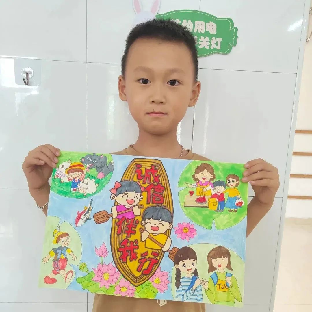 孩子们拿起画笔,把发生在自己身边的诚信小故事描绘出来。通过一幅幅童趣的画向人们展示诚信的美好,从而感受到诚信无处不在。真正让诚实守信成为孩子成长的基石。