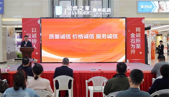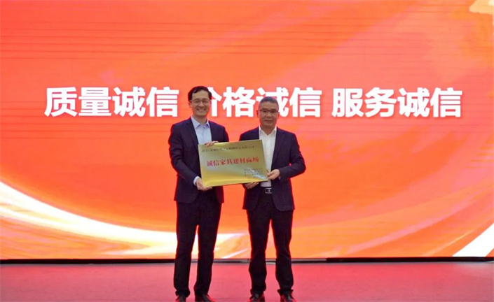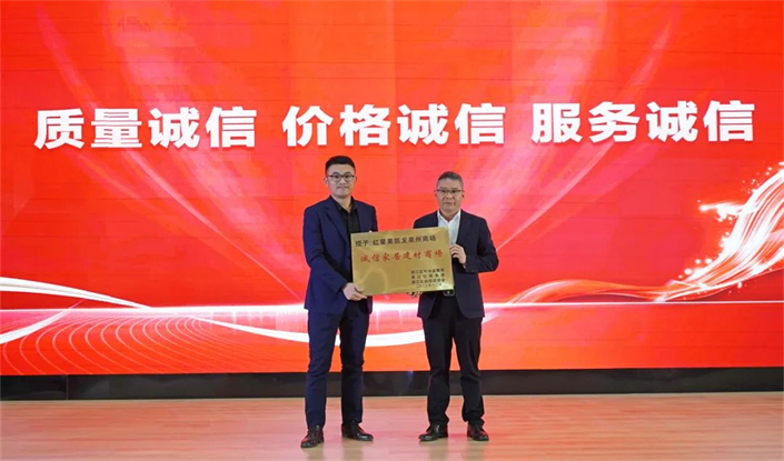活动现场,彭朝顺为泉州居然之家洛江店、红星美凯龙商场授予“诚信家居建材商场”称号牌匾。
