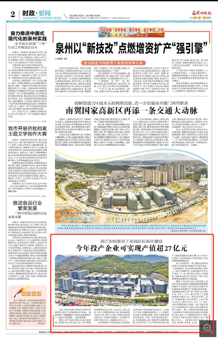 智谷(泉州)万洋高新技术产业园预计9月底企业将全部入驻,年底前全部投产。